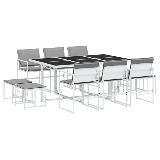 Set da Pranzo da Giardino 11 pz con Cuscini Bianco in Textilene