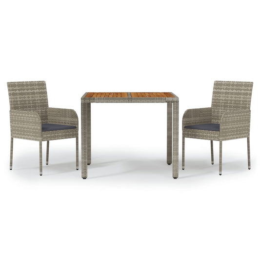 Set da Pranzo da Giardino 3 pz con Cuscini in Polyrattan Grigio
