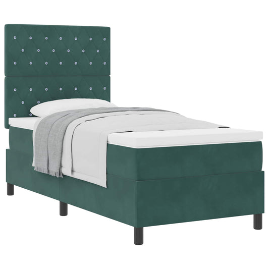 Letto a molle con materasso Verde scuro 90 x 190 cm Velluto