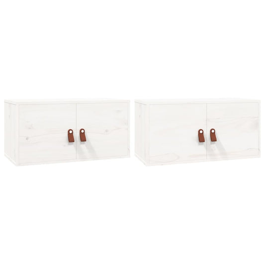 Pensili 2 pz Bianchi 80x30x30 cm in Legno Massello di Pino