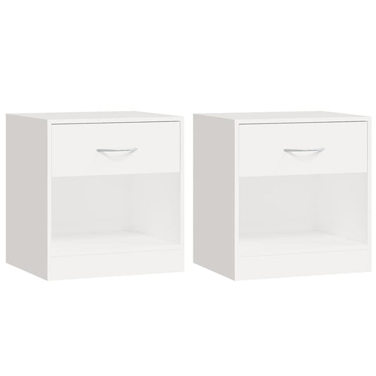 2 Stück Nachttische mit Schublade Weiß