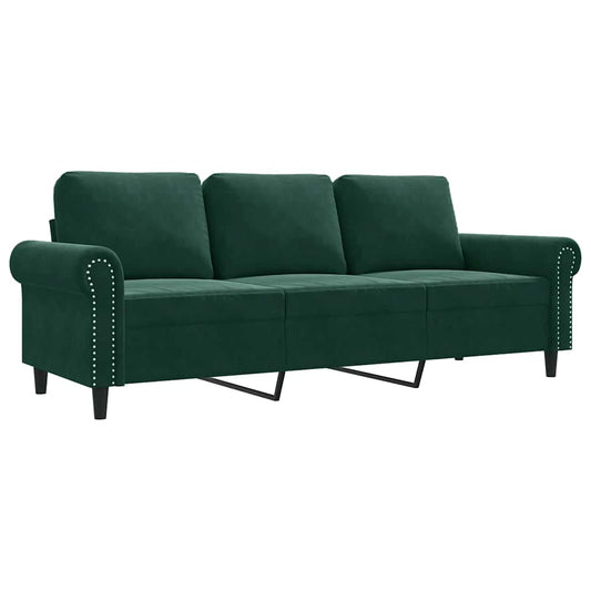 Divano a 3 Posti Verde Scuro 180 cm in Velluto