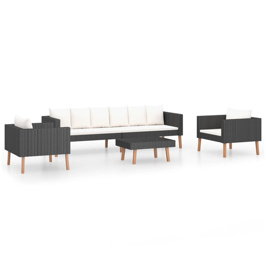 Set Divani da Giardino 6 pz con Cuscini in Polyrattan Nero