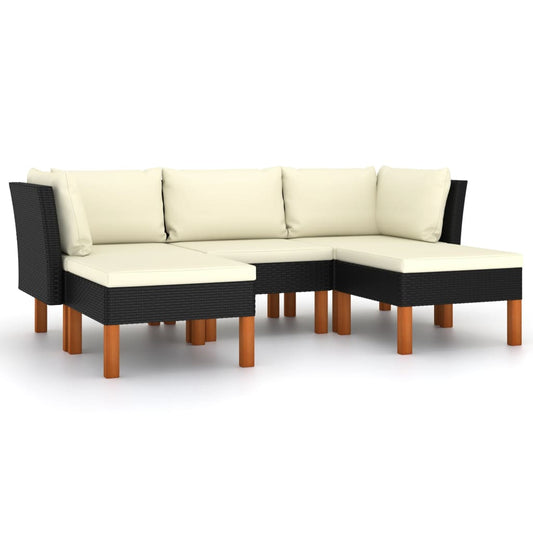 5-teiliges Gartensofa-Set mit schwarzen Polyrattan-Kissen