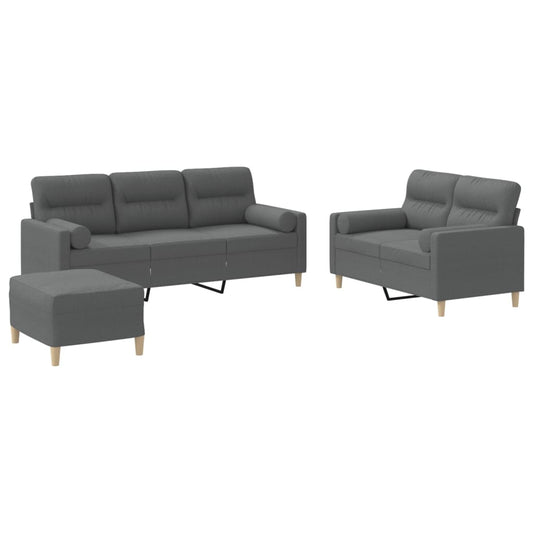 Set di Divani 3 pz con Cuscini Grigio Scuro in Tessuto
