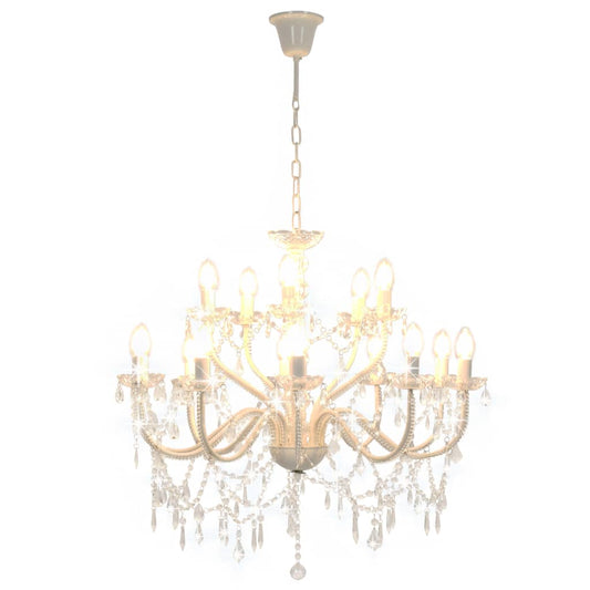 Kronleuchter mit weißen Perlen, 12 E14-Glühbirnen