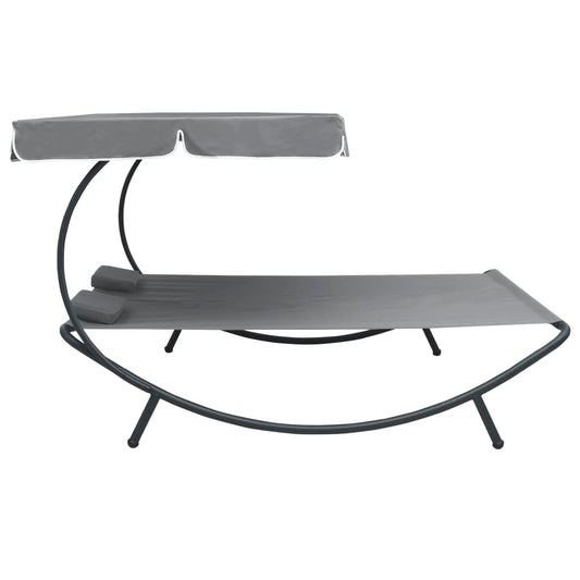 Lettino Prendisole da Esterno con Baldacchino e Cuscini Grigio