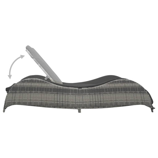 Lettino Prendisole a 2 Posti con Cuscino in Polyrattan Grigio