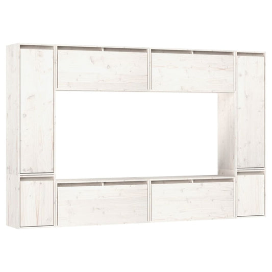 Mobili TV 8 pz Bianchi in Legno Massello di Pino