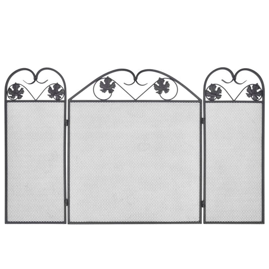 Recinzione per Camino a 3 Pannelli in Ferro Nero