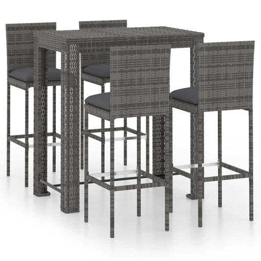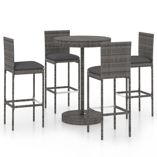 5-teiliges Garten-Bar-Set mit grauen Polyrattan-Kissen