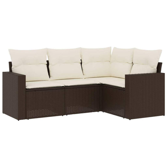 4-teiliges Gartensofa-Set mit braunen Polyrattan-Kissen
