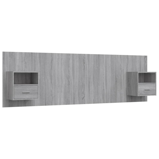 Testiera Letto con Comodini in Legno Multistrato Grigio Sonoma