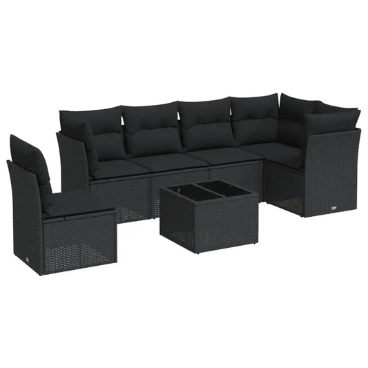 Set Divani da Giardino con Cuscini 7pz Nero Polyrattan