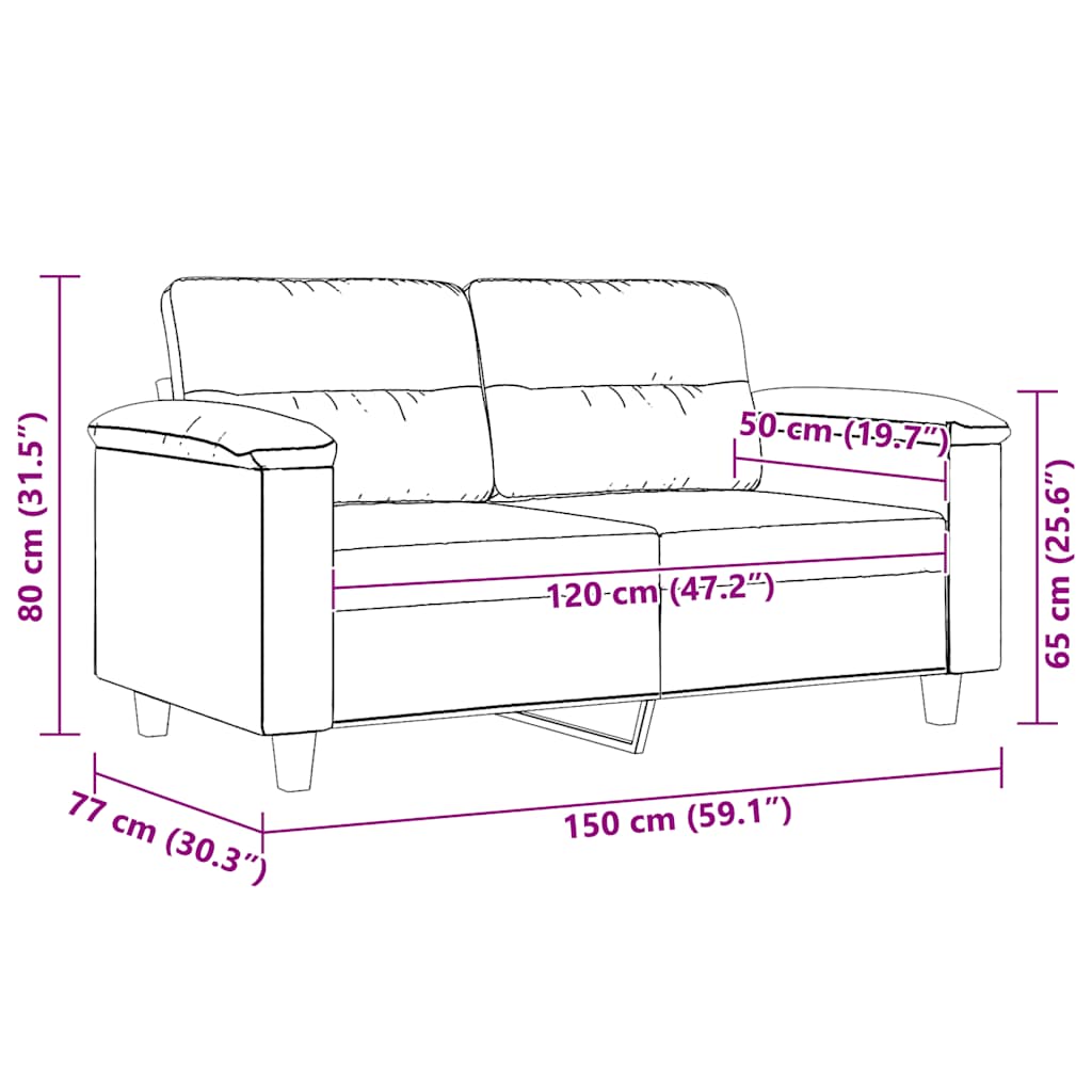 Divano a 2 Posti Grigio Chiaro 120 cm in Tessuto Microfibra