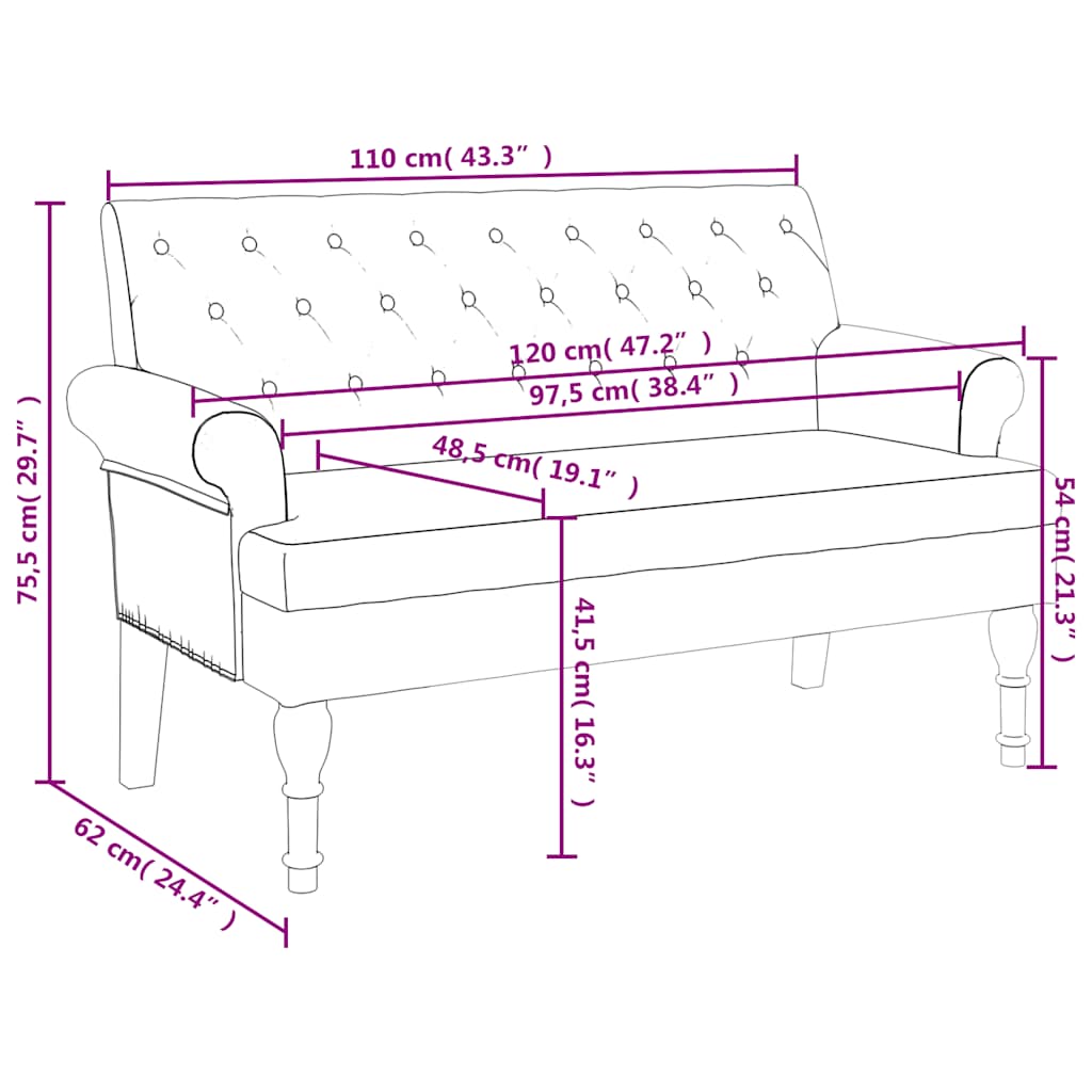 Panca con Schienale Verde Scuro 120x62x75,5 cm in Tessuto