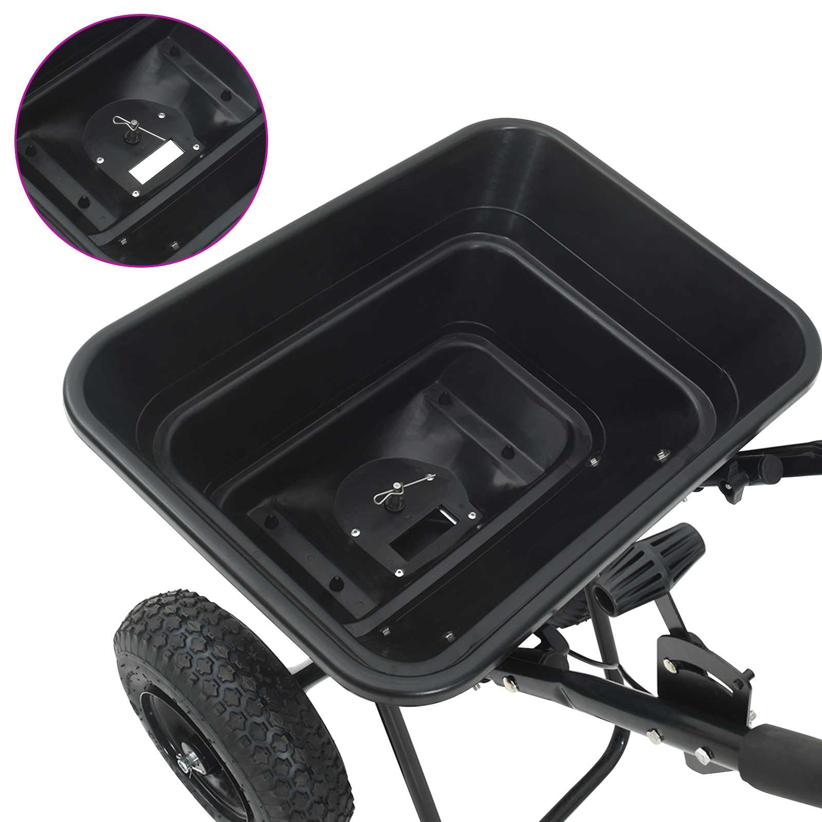 - Costruzione robusta: Realizzato in PVC e acciaio, pensato per resistere a un uso intenso e condizioni meteo dure, lo spargitore è una scelta che dura nel tempo per il tuo giardino.