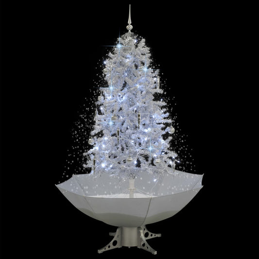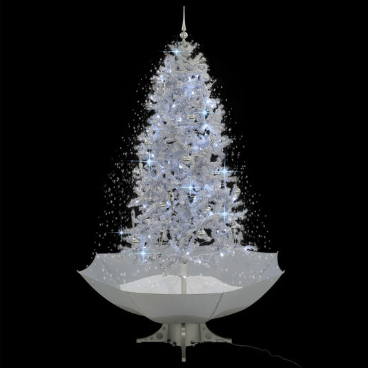 Albero di Natale con Neve e Base a Ombrellone Bianco 140 cm