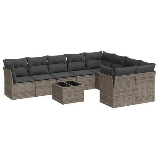 Set Divano da Giardino 10 pz con Cuscini Grigio in Polyrattan