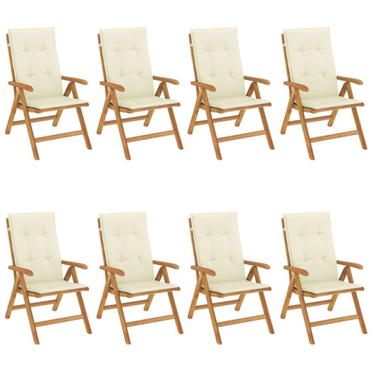 Sedie da Giardino Reclinabili con Cuscini 8 pz in Legno di Teak