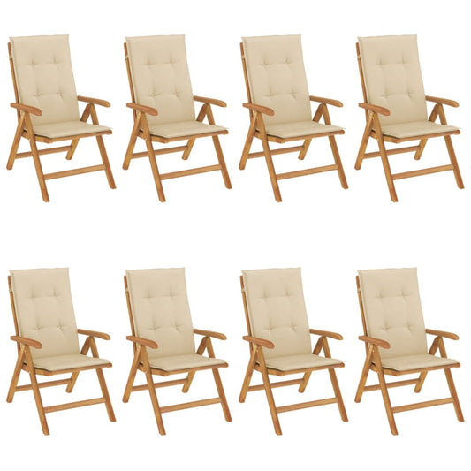 Sedie da Giardino Reclinabili con Cuscini 8 pz in Legno di Teak