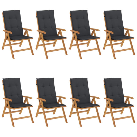 Sedie da Giardino Reclinabili con Cuscini 8 pz in Legno di Teak