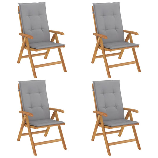 Sedie da Giardino Reclinabili con Cuscini 4 pz in Legno di Teak