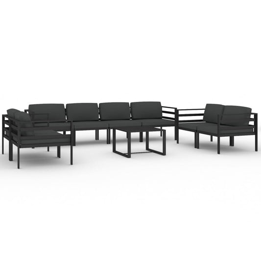 Set Divani da Giardino 9 pz con Cuscini in Alluminio Antracite