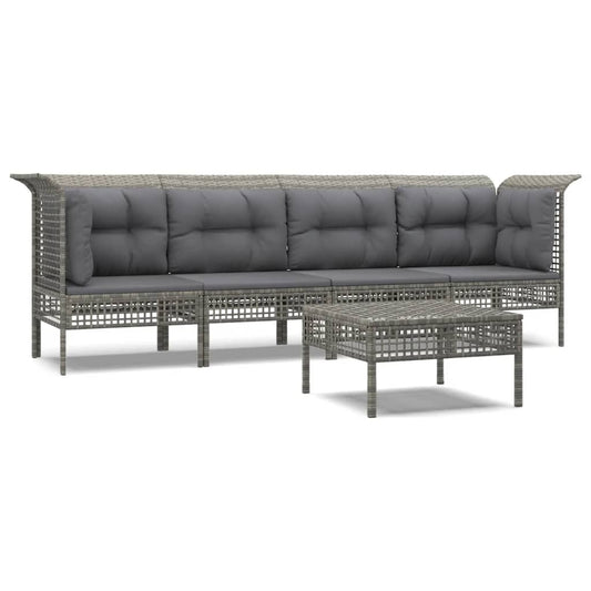 Set Divani da Giardino 5 pz con Cuscini in Polyrattan Grigio
