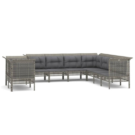 Set Divani da Giardino 9 pz con Cuscini in Polyrattan Grigio