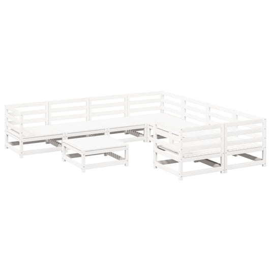 Set Divani da Giardino 9 pz Bianco in Legno Massello di Pino