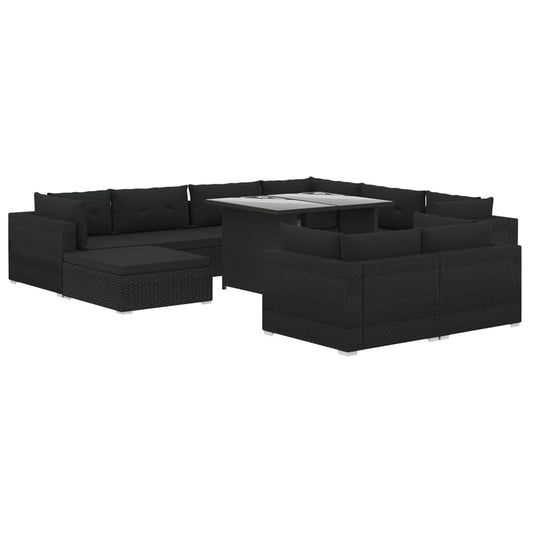 Set Divani da Giardino 10 pz con Cuscini in Polyrattan Nero