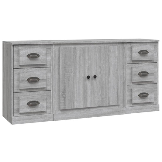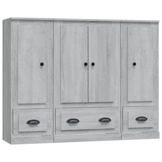 Credenze 3 pz Grigio Sonoma in Legno Multistrato