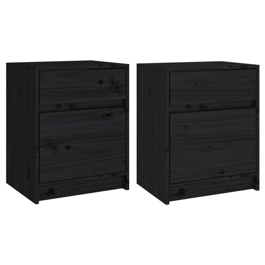 2 pcs Black Bedside Tables 40x31x50 cm in Solid Pine Wood