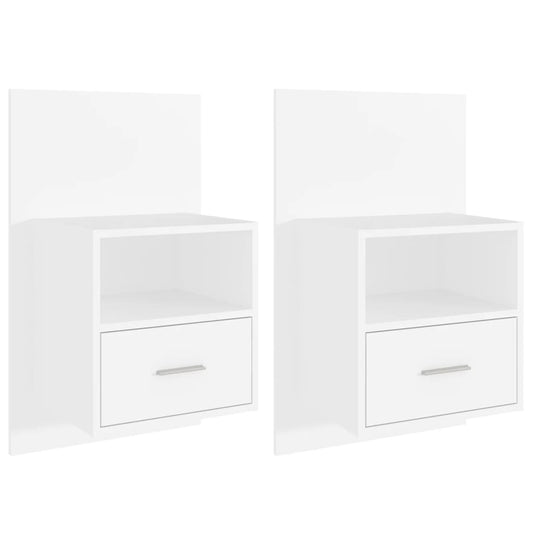 Comodini a Muro 2 pz Bianchi in Legno Multistrato
