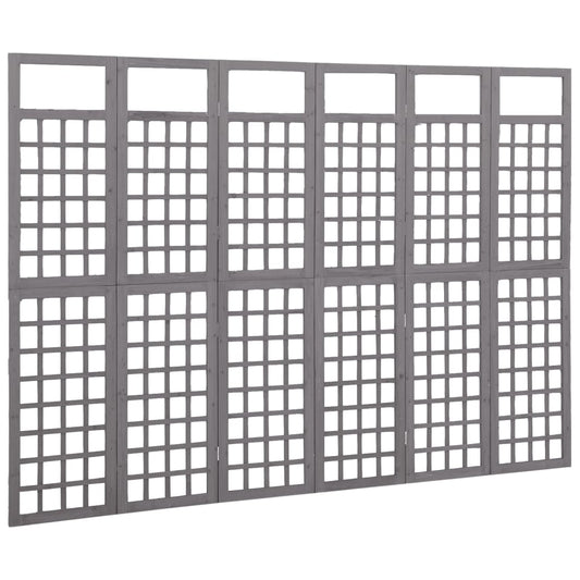 Divisorio a 6 Pannelli in Legno di Abete Grigio 242,5x180 cm