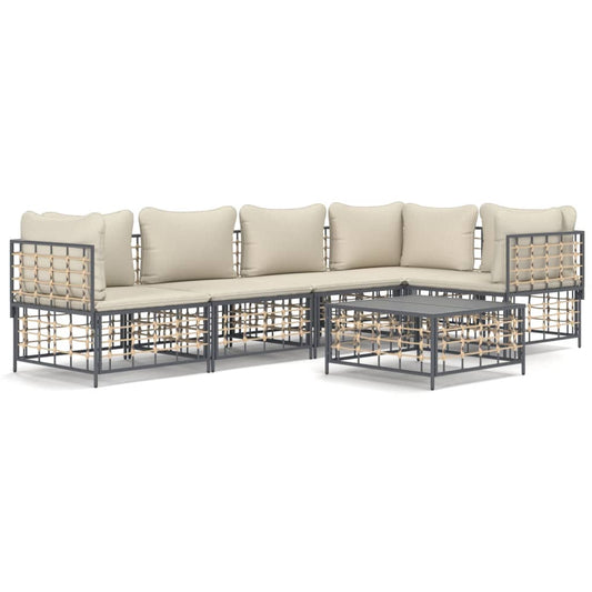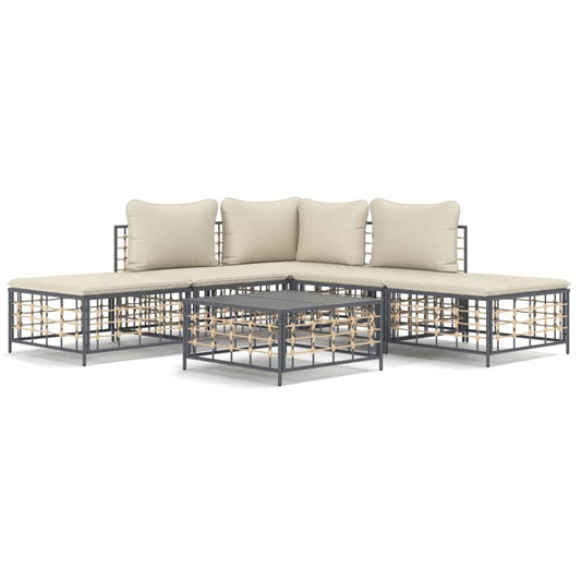 6 pc Garden Sofa Set with Anthracite Polyrattan Cushions