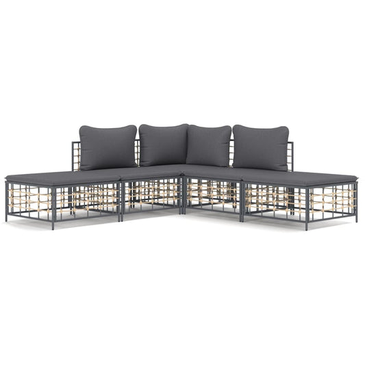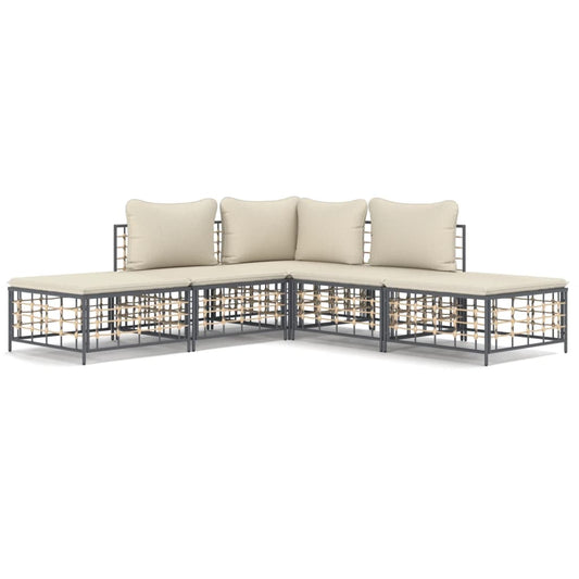 Set Divani da Giardino 5 pz con Cuscini Antracite in Polyrattan