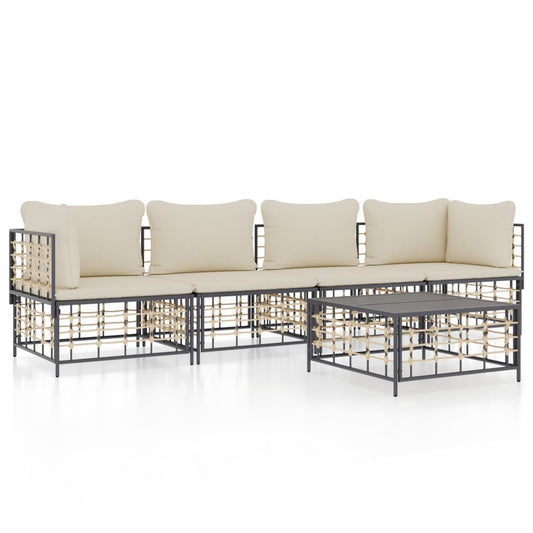 5-piece Garden Sofa Set with Anthracite Polyrattan Cushions