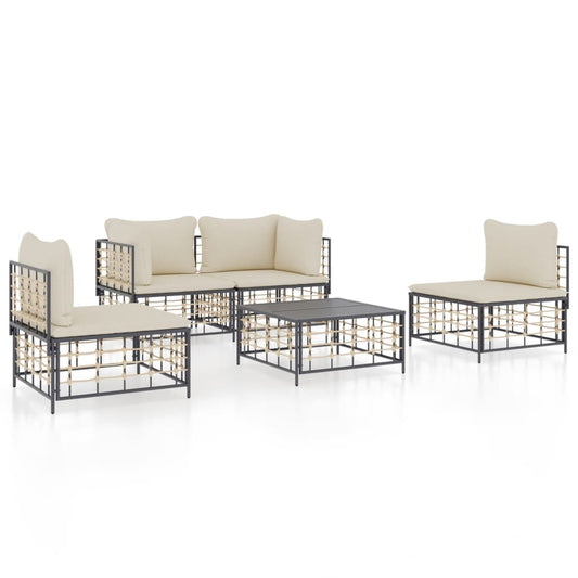 6 pc Garden Sofa Set with Anthracite Polyrattan Cushions