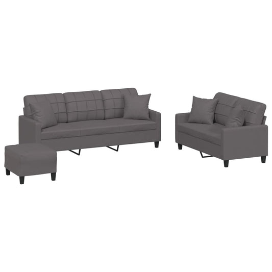 Set di Divani 3 pz con Cuscini Grigio in Similpelle