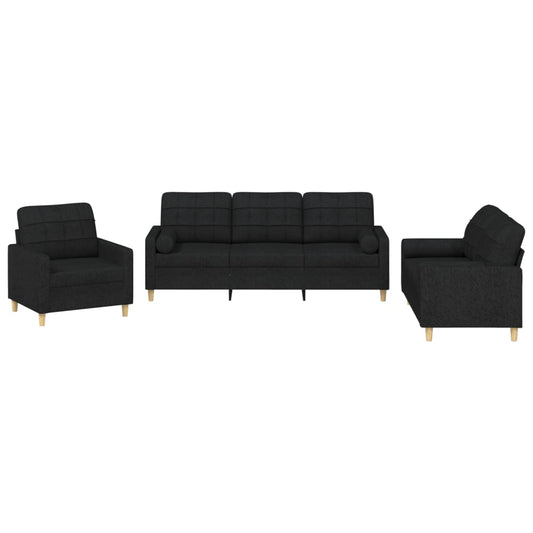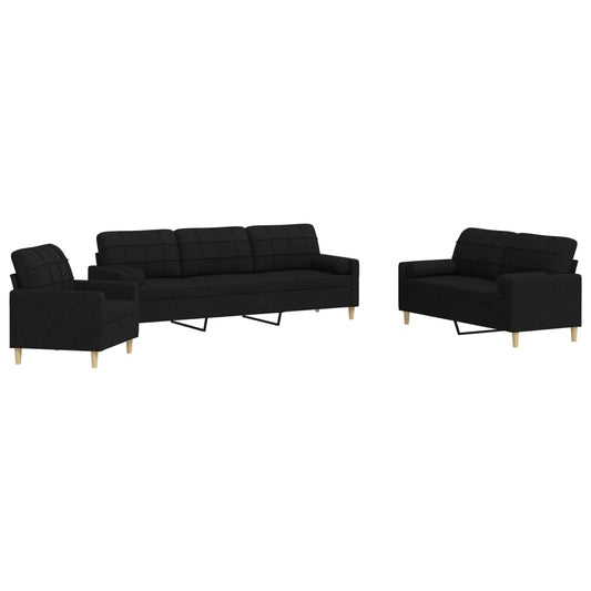 Set Divani 3 pz con Cuscini Decorativi Nero in Tessuto