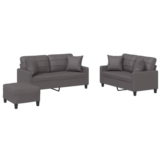 Set di Divani 3 pz con Cuscini Grigio in Similpelle