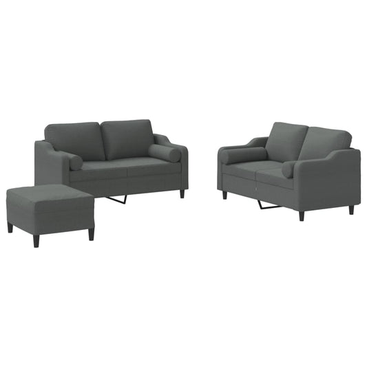 Set di Divani 3 pz con Cuscini Grigio Scuro in Tessuto