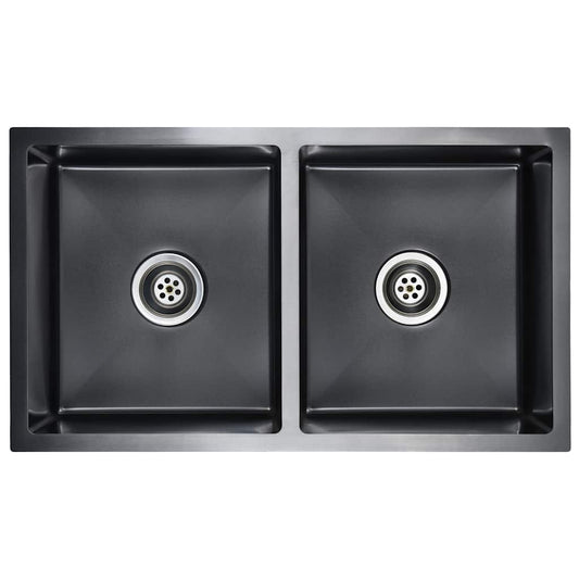 Lavello da Cucina Lavorato a Mano Nero Acciaio Inox