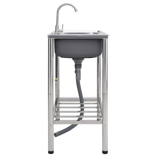 Lavello da Campeggio Vasca Doppia con Rubinetto in Acciaio Inox