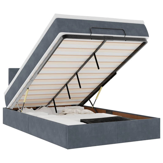 Pouf Letto con Materasso e LED Grigio Scuro 140x200 cm