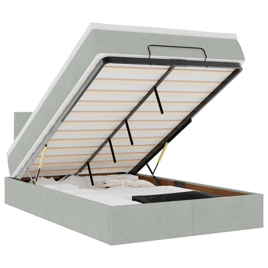 Pouf Letto con Materasso Grigio Chiaro 120x200 cm in Tessuto