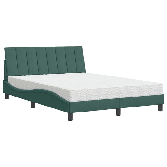 Letto con Materasso Hanko Verde Scuro 140x200 cm in Velluto