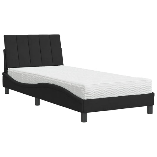 Letto con Materasso Hanko Nero 90x190 cm in Velluto